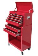 Complete set of TB-220X with top toolbox and bottom tool chest. Wheels for mobility convenience and durable. Powder coat red paint for superior scratch and chemical resistance. Eight ball-bearing slide(BBS) drawers (6+2). Our excel portable metal tool boxes are made to withstand the rigors of mechanics tradesmen and homeowners. Heavy duty full size tote trays with comfort grip handles. Rust resistant lockable latches are of precise state of the art construction. Our excel portable metal tool boxes are painted with a bright safe powder coating finish that contains no lead.